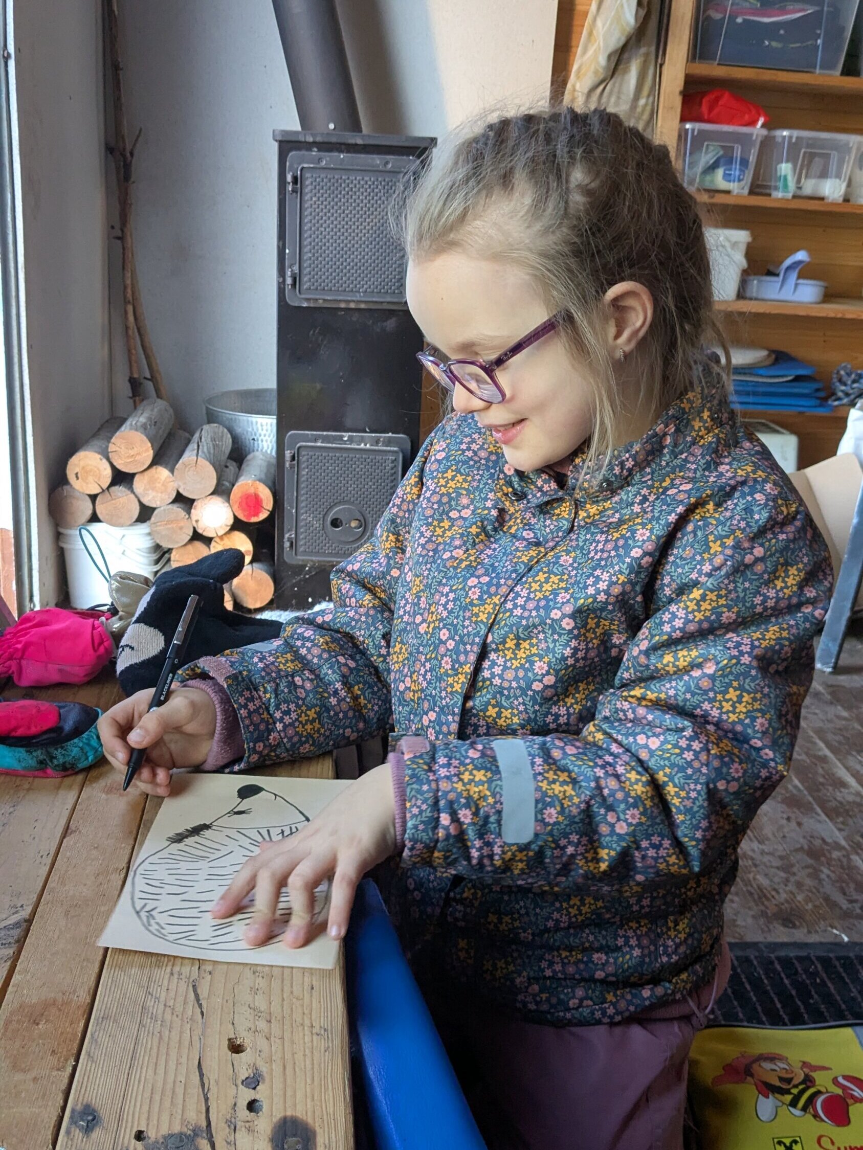 Auch drinnen blieb es kreativ. Im warmen Häuschen wurde fleißig gebastelt: Bunte Igel aus Papier, sowie Girlanden aus Wolle entstanden mit viel Geduld und Begeisterung.🎨🧶