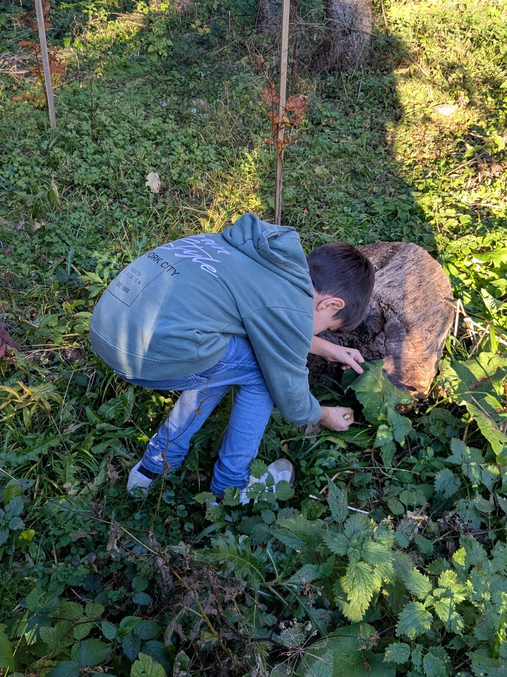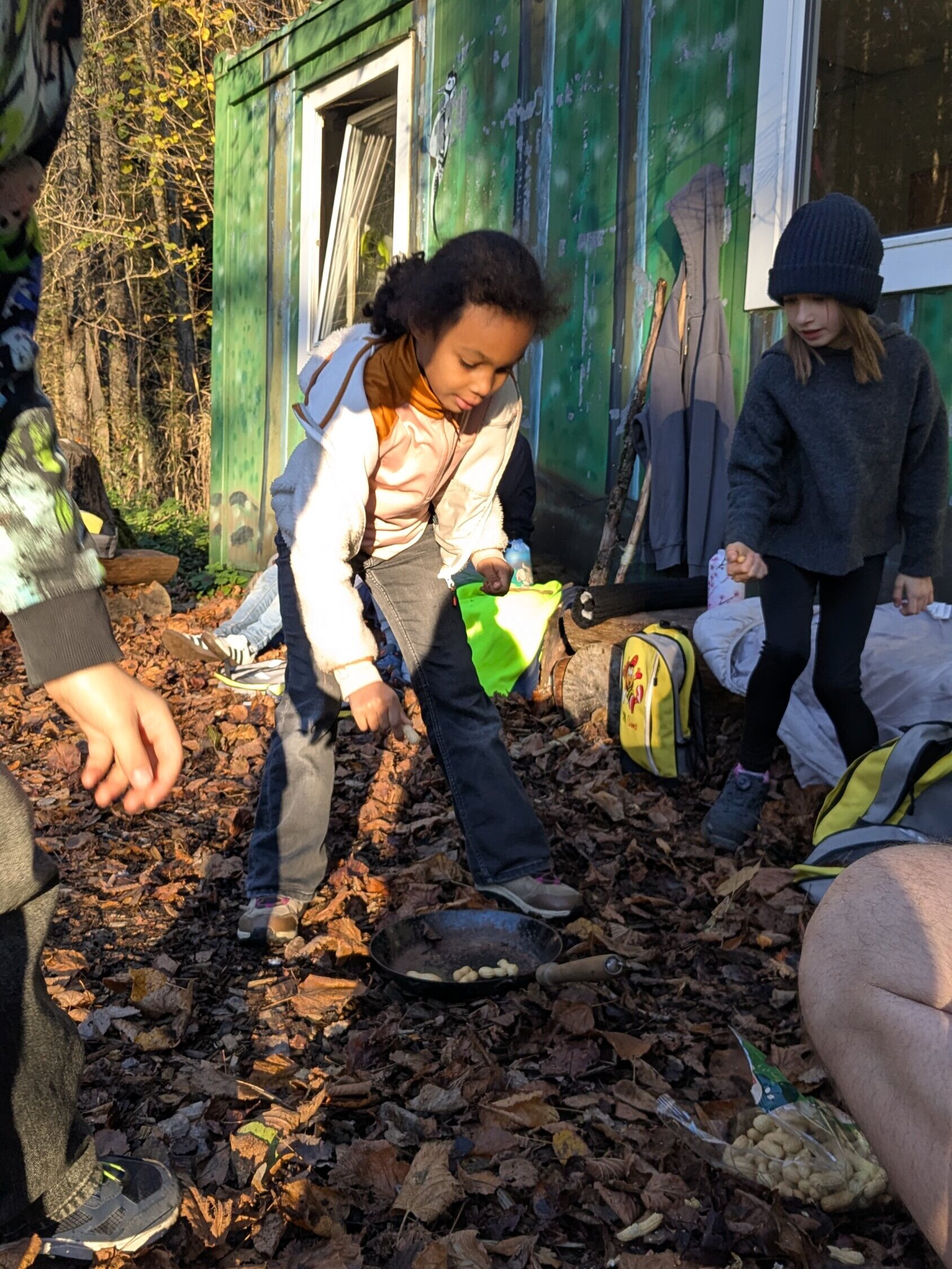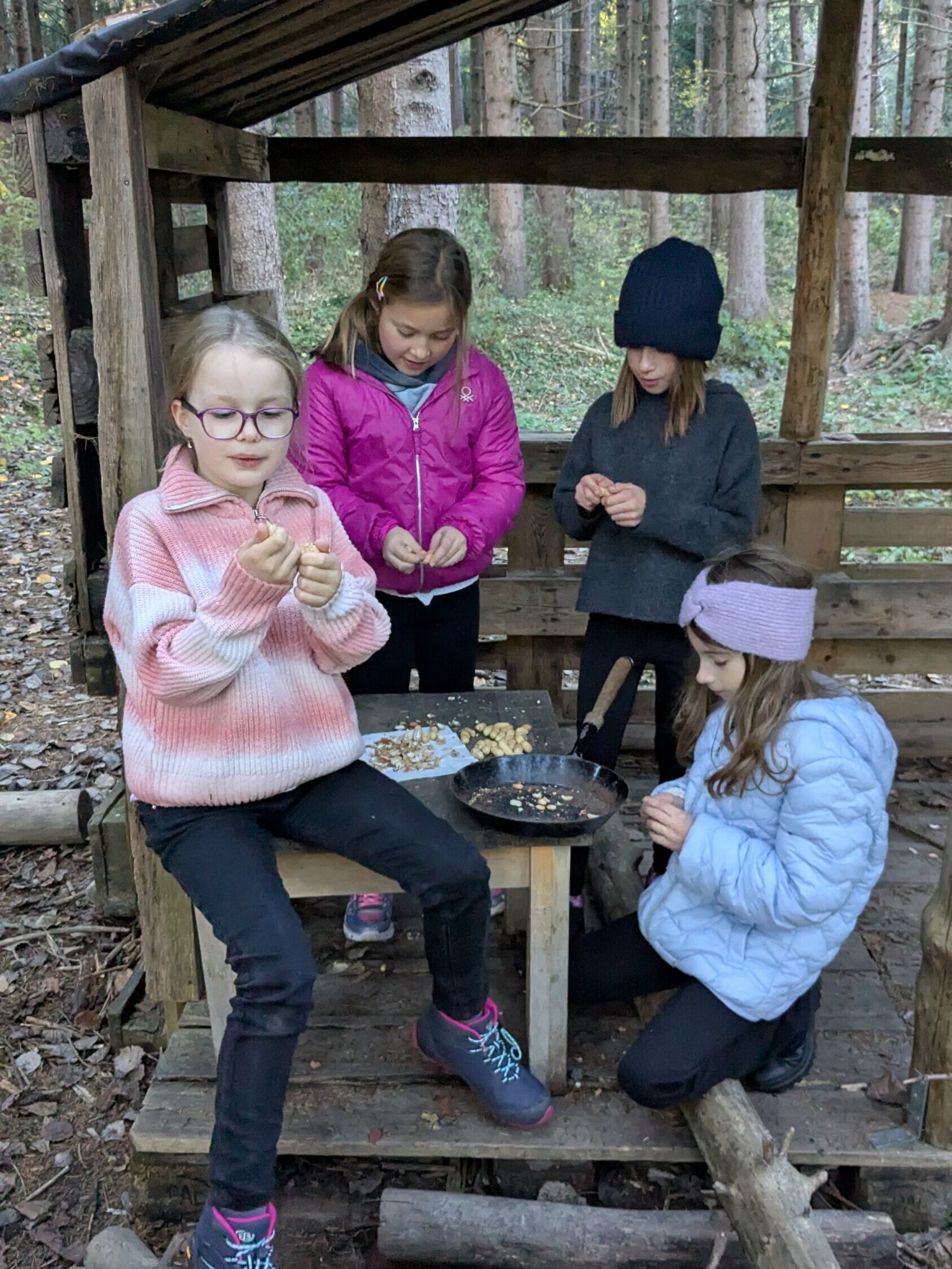 Unser heutiger Waldtag stand ganz im Zeichen der Eichhörnchen – denn genau in deren Rolle durften die Kinder schlüpfen! Jedes Kind bekam zu Beginn zehn Erdnüsse, die es im Wald so geschickt wie möglich verstecken sollte. Die Herausforderung: Die Vorräte später auch wieder zu finden.