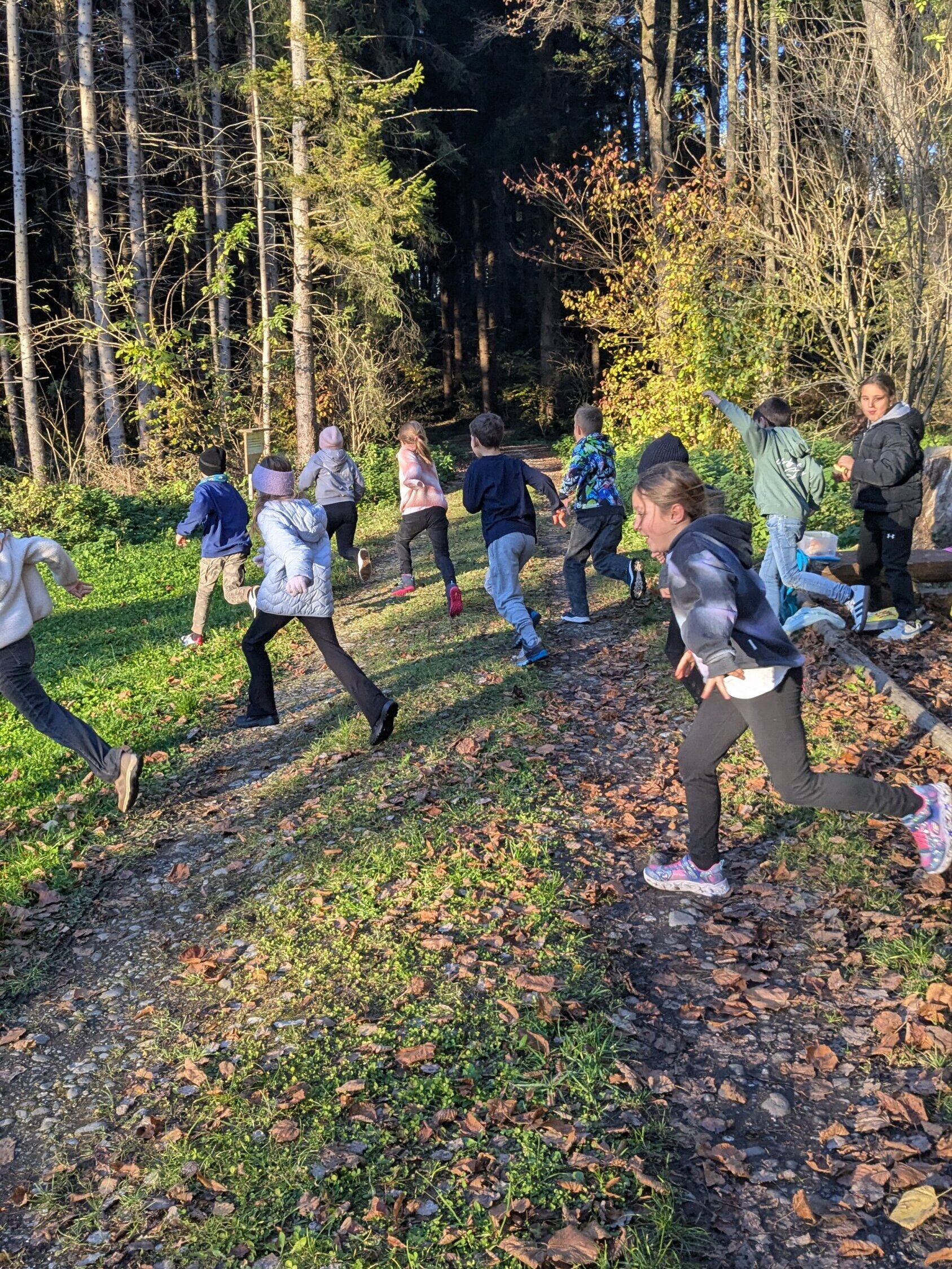 Nachdem alle ihren Vorrat versteckt hatten, ging es erneut los in den Wald – diesmal mit einer klaren Mission: Eine bestimmte Anzahl der eigenen Erdnüsse wieder einzusammeln. Dabei zeigte sich schnell, wie knifflig es sein kann, seine eigenen Verstecke wiederzufinden. Wer zu wenige Nüsse fand, wurde kurzerhand zum Vogel, der den Eichhörnchen eine Erdnuss stibitzte. So zeigte sich spielerisch, wie schwierig es für echte Eichhörnchen sein kann, genügend Futter für den Winter zu sichern.