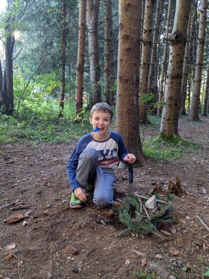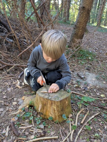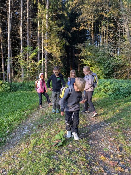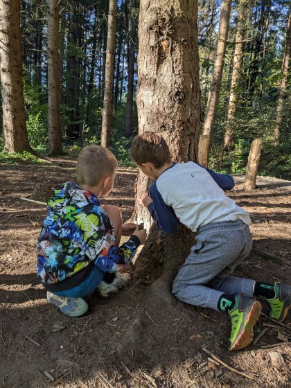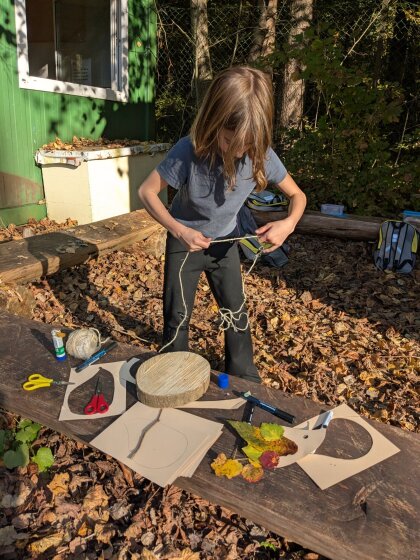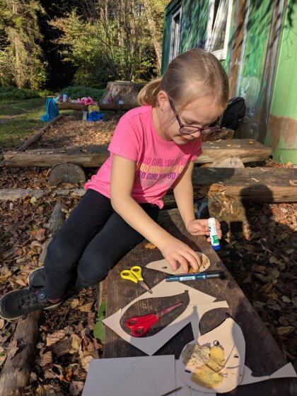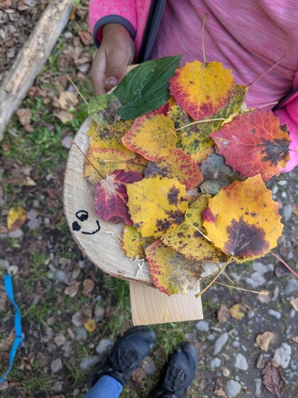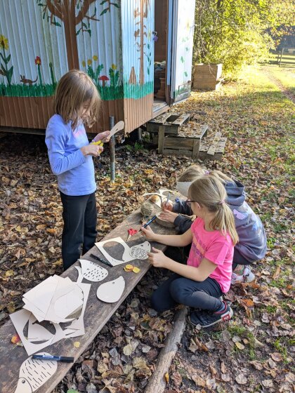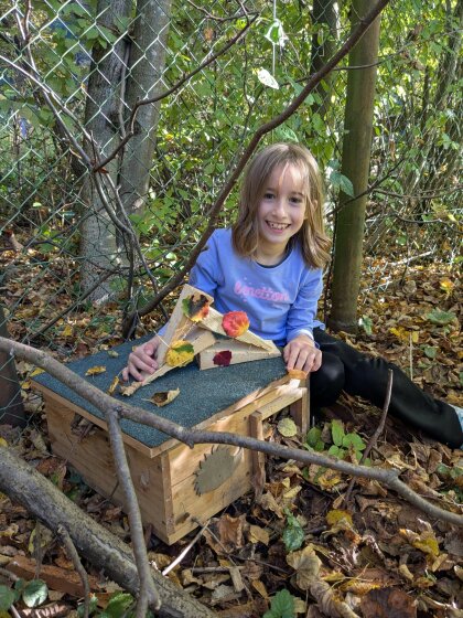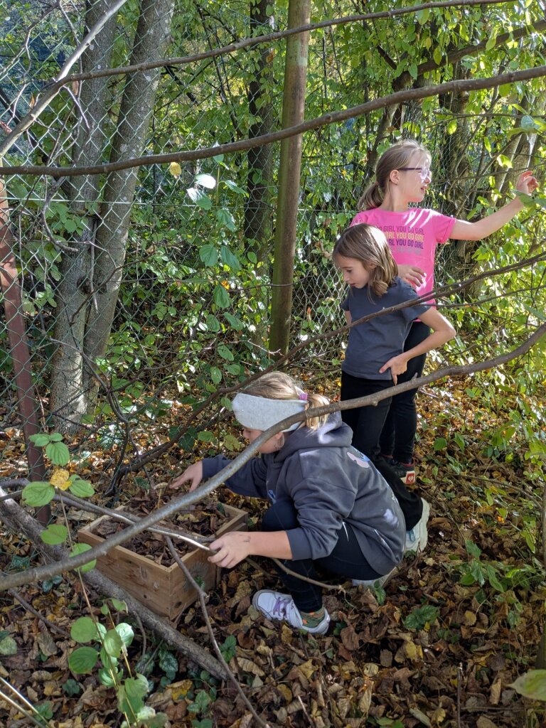 Auch an diesem herbstlichen Waldtag gab es wieder viel zu entdecken und zu gestalten. Gemeinsam wurde ein Igelhaus mit trockenem Laub befüllt und ein ruhiger, geschützter Platz dafür gesucht – vielleicht zieht dort bald ein kleiner Waldbewohner ein.