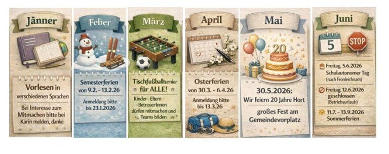 Die Anmeldung für die Semesterferien findet ihr hier zum Downloaden oder in ausgedruckter Form vor unserer Eingangstüre. Die ausgefüllte Anmeldung bitte bis spätestens 23.1.2026 per Mail oder persönlich abgeben. DANKE