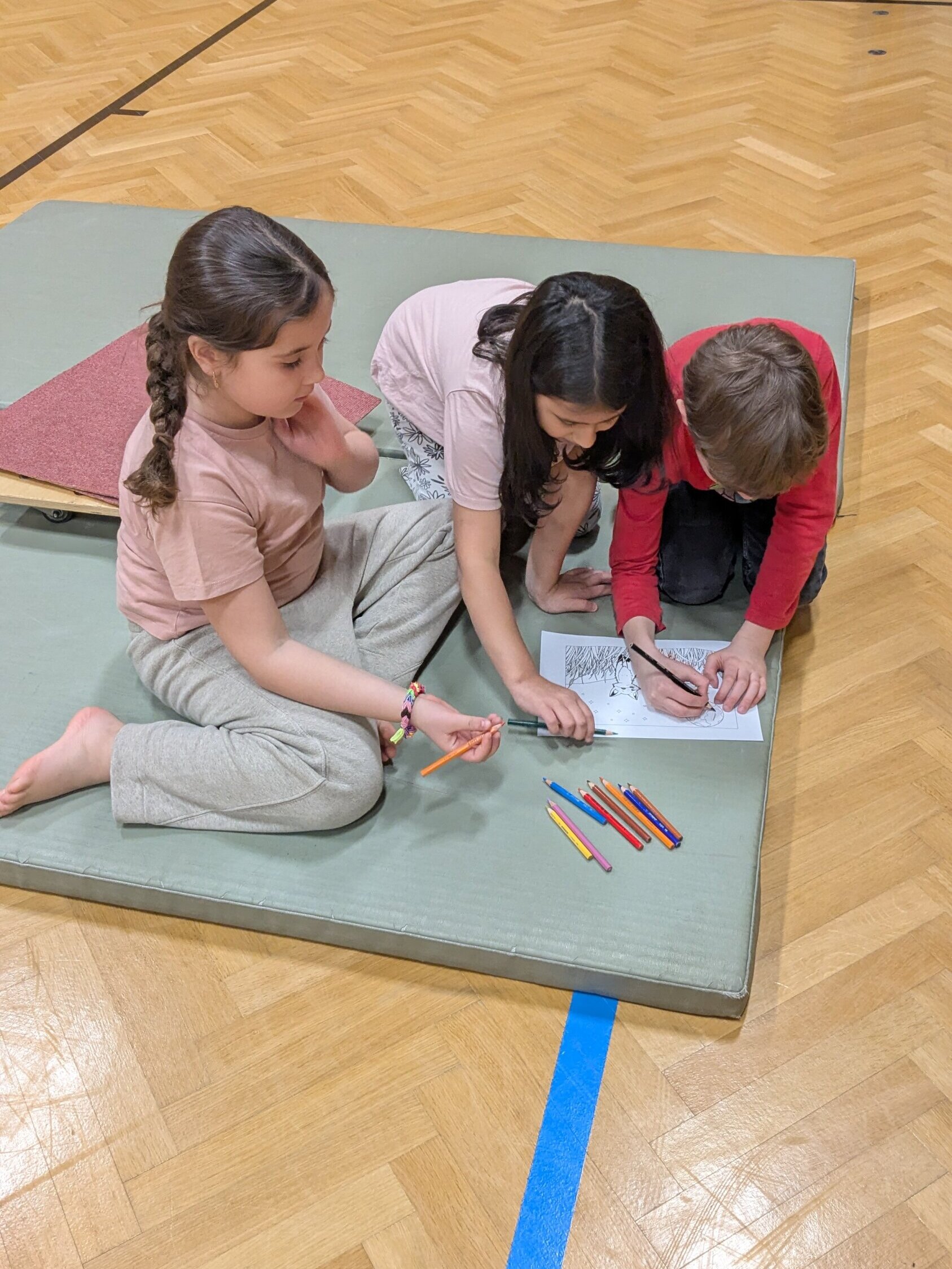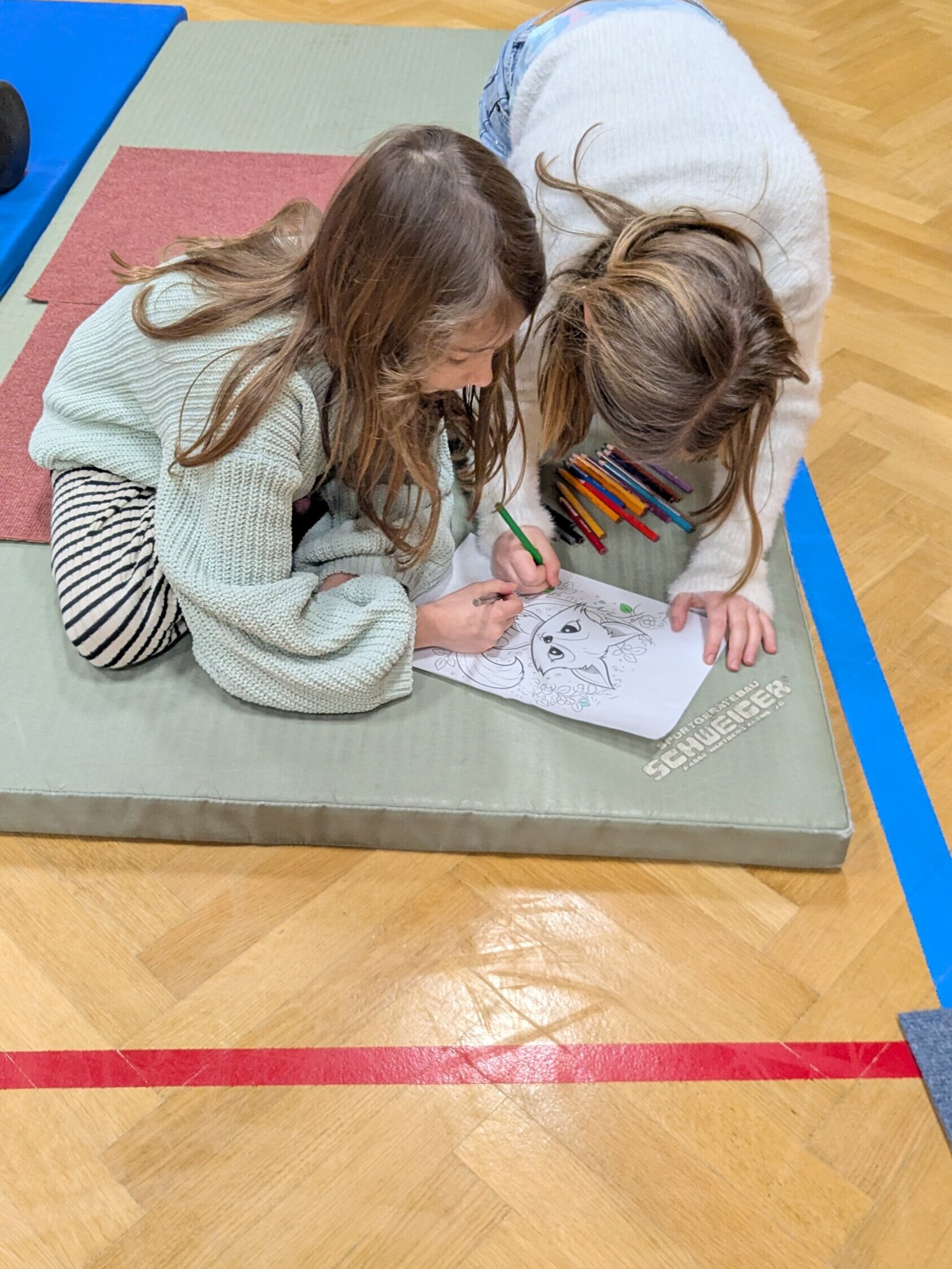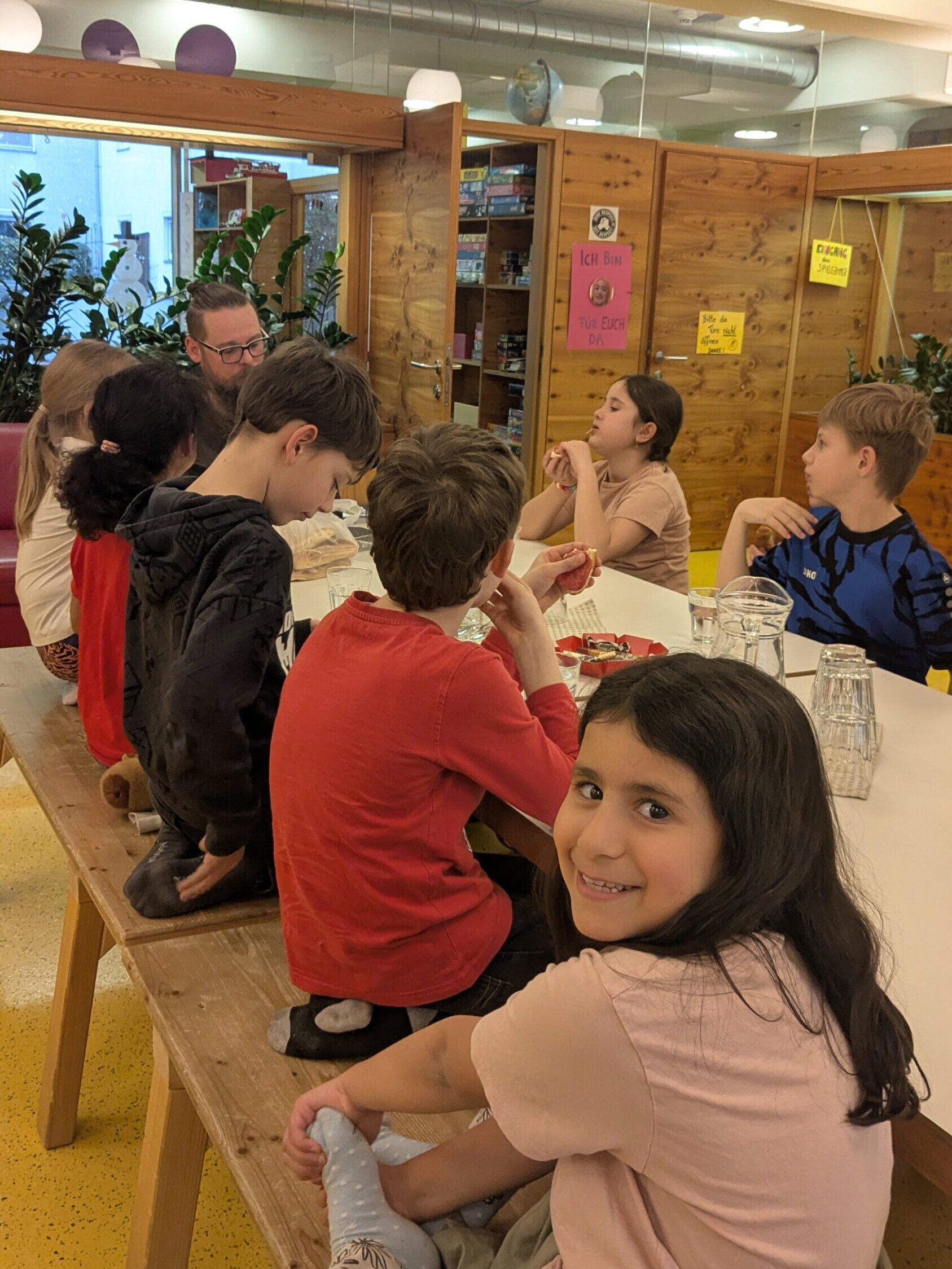 Nach so viel Bewegung ließen wir den Nachmittag im Hort ruhig ausklingen. Einige Kinder vertieften sich in Ausmalbilder, während andere mit Bechern bauten.
